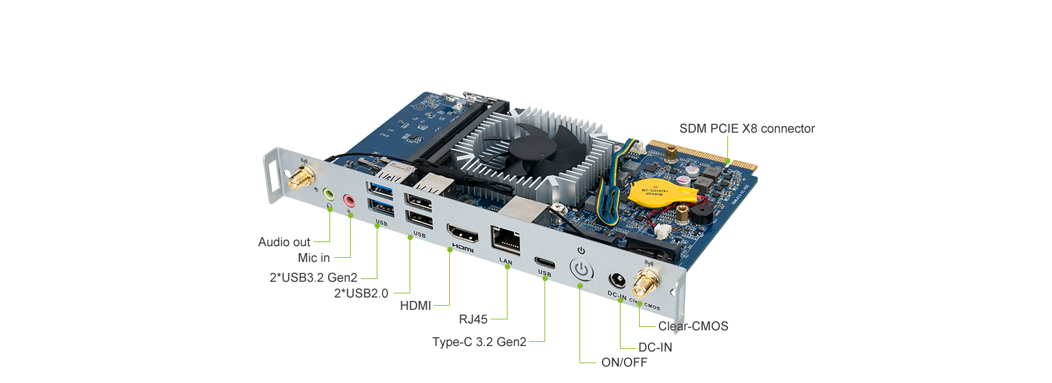 优秀的视频显示,好博(中国)体育科技SDM-L613拥有1个HDMI (7680 x 4320 @60 Hz)接口,支持60HZ刷新率,实现8k超清显示,SDM(PCIE X8)可以传输 HDMI2.0 (4096 x 2304 @60 Hz)、DP1.2 (4096 x 2304 @60 Hz)、USB3.2 Gen1、UART、GSPI、I2C、PCIe 和 SYS_FAN 信号连接。