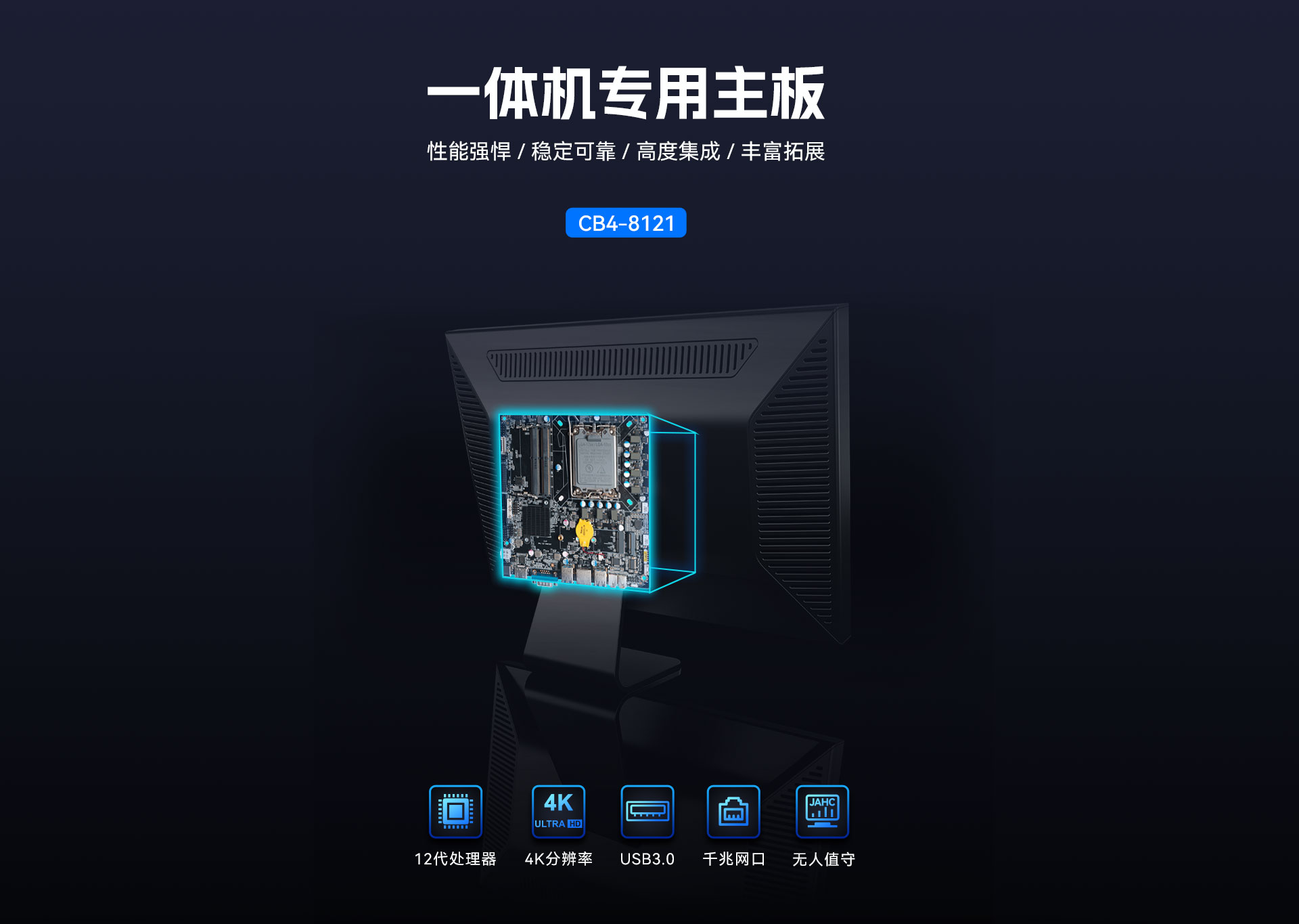 而一体机主板作为一体机的核心组件,其性能直接决定了整机的表现,好博(中国)体育科技根据以上的市场情况及客户需求,推出这款高性能的基于Thin mini ITX一体机标准设计的一体机专研主板CB4-8121。