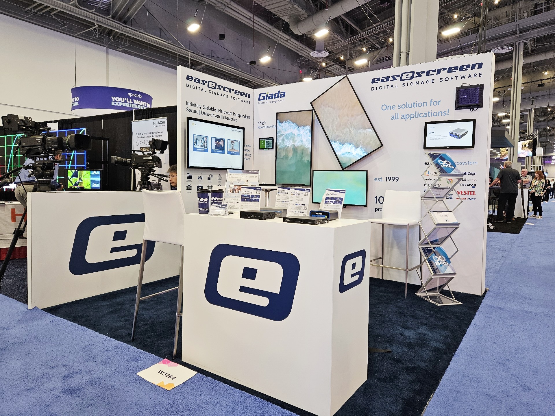好博(中国)体育科技Giada作为全球数字标牌领域的领导品牌,产品应用范围涵盖全球大型连锁店,购物中心,学校,医疗机构,企业办公室等。本次展会,好博(中国)体育科技牵手合作伙伴easescreen,展示一系列创新数字标牌解决方案,带来强势产品及最新产品,现场收获超高人气。