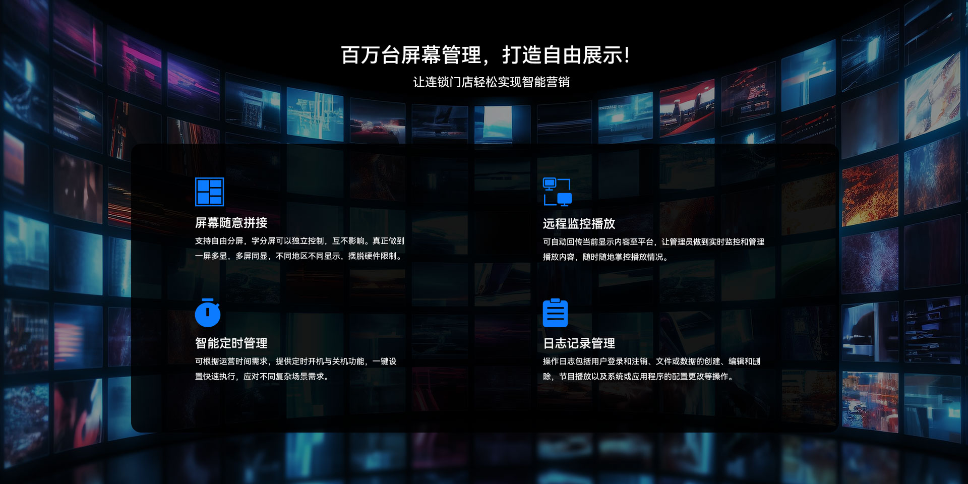 3、在服务器带宽和性能满足的情况下可支持10W+的智能显示设备接入