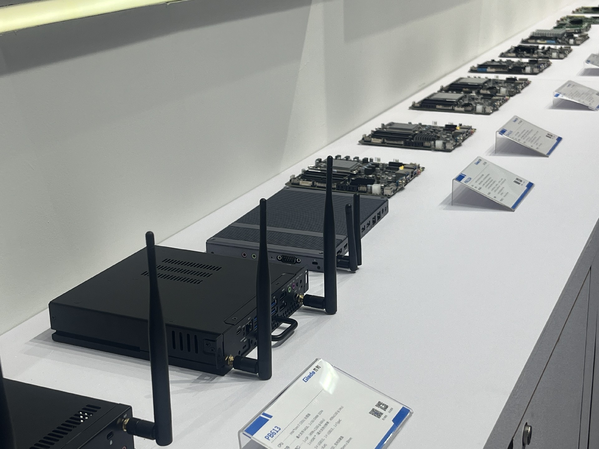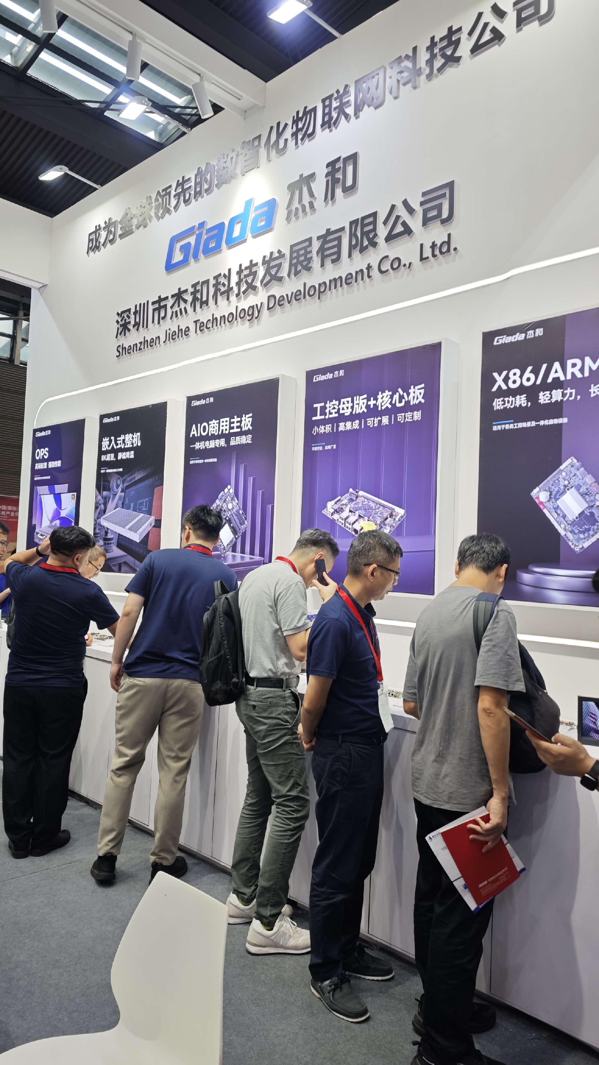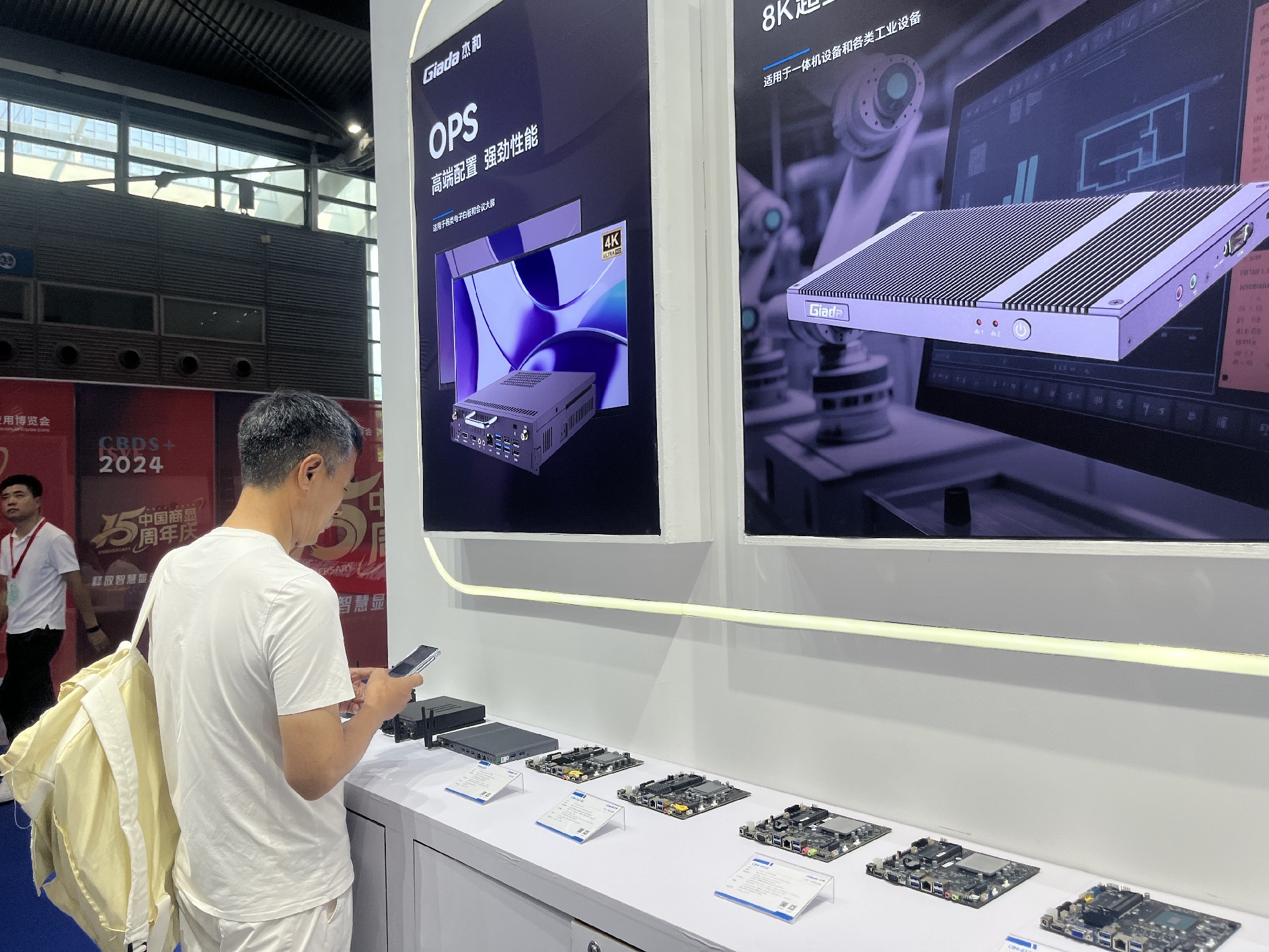 好博(中国)体育科技展位放置在c位的明星产品和最新产品吸引了众多参观者的目光。展台下方整齐排列着公司的产品,包括主板、嵌入式整机、OPS等,这些产品不仅适用于商业展示领域,还广泛应用于工业、制造业和教育业等多个行业。