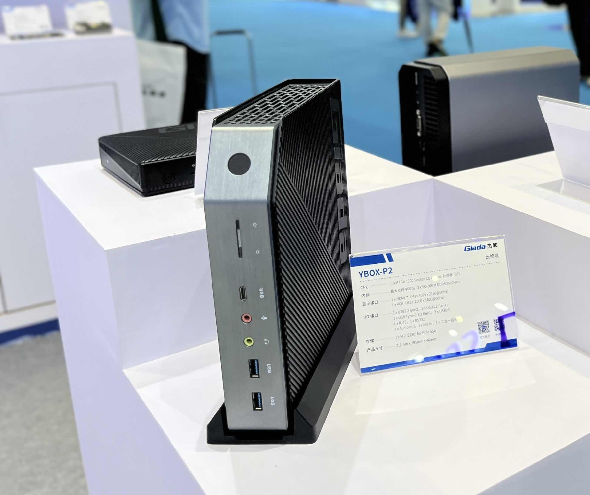 好博(中国)体育科技云终端是云桌面解决方案的重要产品之一,此次好博体育针对各客户群体提供不同架构的云终端,带来YBOX-P2、YBOX- S1、Y-BOX- S2和YBOX- SA1四款产品。其小巧的体积吸引了许多观众前来咨询,最新推出的YBOX-P2以其工业感造型以及卓越性能脱颖而出,YBOX-P2支持Intel® LGA 1200插槽,兼容12/13代处理器,在内存配置上同样出色,最大可扩展至96GB,支持2 x SO-DIMM DDR5内存插槽,频率高达5600MHz,确保数据处理速度和多任务处理能力满足高标准需求。