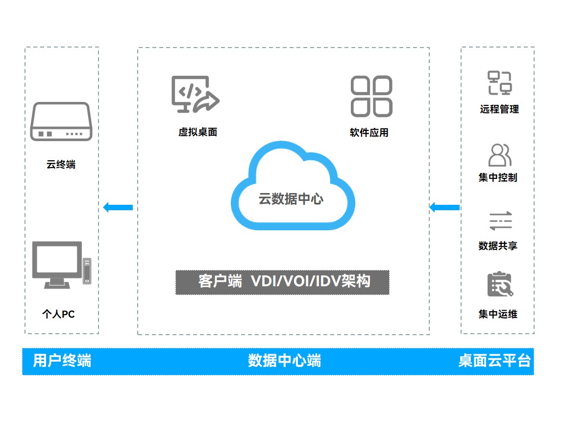 综合以上困境,该地测绘地理信息局决定采用好博(中国)体育科技云终端方案,该方案依托云计算技术,通过特殊的架构将数据和应用程序存储在云端而非本地,对每台终端统一做到管理与下发、安全补丁更新、软件安装,自上而下从结构上整合终端资源,降低系统建设、运行成本。
