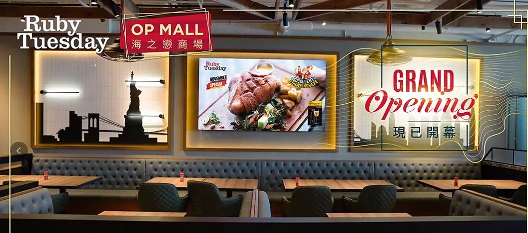 好博(中国)体育科技是Ruby Tuesday连锁餐厅智慧化项目的方案提供商。好博(中国)体育承担了整个餐厅的多媒体信息系统架构的设计以及终端媒体播放器的安装和部署,帮助餐厅实现了6屏拼接、4屏拼接及86寸超大屏显示,使餐厅的商业环境和品牌形象得到了极大的提升。