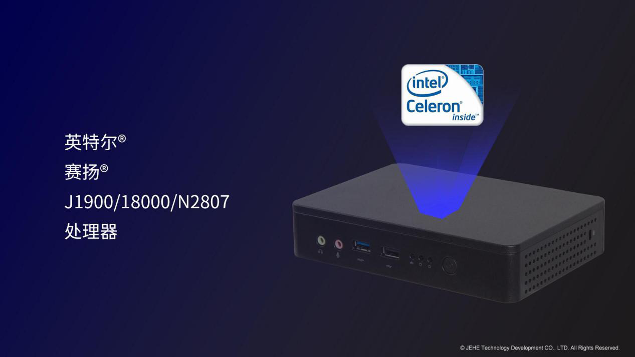 好博(中国)体育科技VT20桌面云终端搭载了知名度很高赛扬®J1900处理器。在嵌入式应用中,赛扬®J1900处理器主打的高单核运算频率(2.4GHz单核睿频)和低功耗(10W),非常适合面向复杂的嵌入式场景。此外,好博(中国)体育VT20适配了其他两款性能较低的BayTrail平台处理器,赛扬®N2807和赛扬®J1800,对于客户端性能要求相对较低的方案依然能够匹配需求。