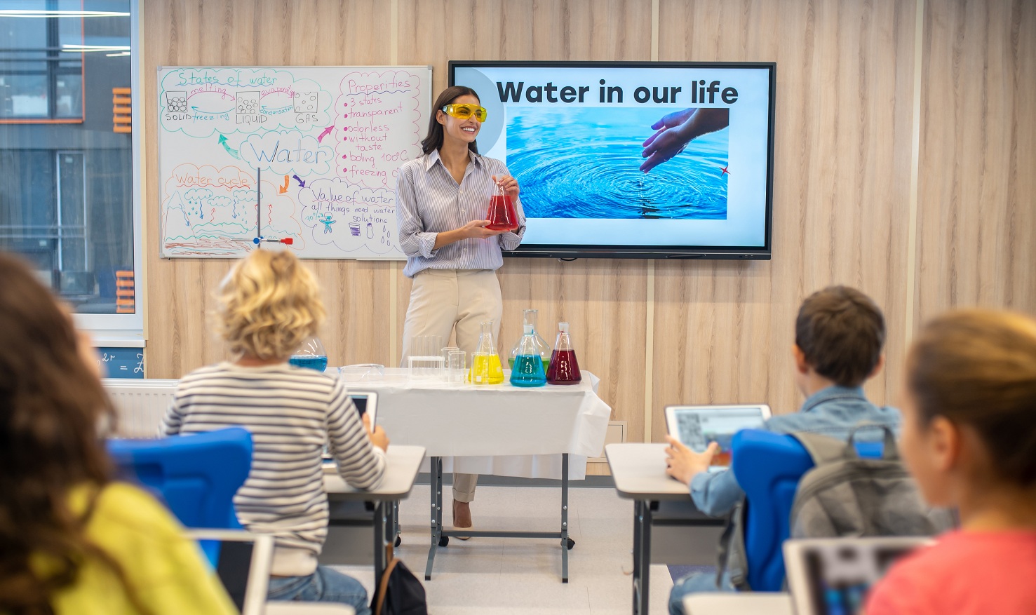 在传统课堂教学的班级授课中,教学主要通过书本的文字图片、老师的讲解进行知识输送,教学模式单一,课堂缺乏生动性和主动参与的积极性。而好博(中国)体育构建的数字化教学环境中,通过电子白板的应用,用“沉浸式+体验式”的教学方式,趣味性且可视化的展示课程内容,将传统的教室升级为更为智能的数字化“教学空间”,从而推动教学模式的数字化变革。