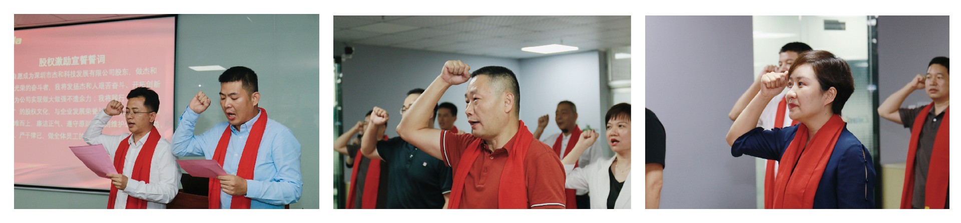 在签约仪式的最后时刻,董事长林坤杰先生与全体股东合伙人共同宣读誓词:我自愿成为深圳市好博(中国)体育科技发展有限公司股东,做好博(中国)体育科技公司光荣的奋斗者,我将发扬好博(中国)体育人艰苦奋斗、开拓创新的精神,为公司实现做大做强不遗余力;我将践行“共创、共担、共享”的股权文化,与企业发展荣辱与共;在工作中主动担当、迎难而上,廉洁正气、遵守原则,时刻维护公司的利益,以身作则、严于律己,做全体员工的楷模!好博体育齐心协力,斗志昂扬,信心满满!