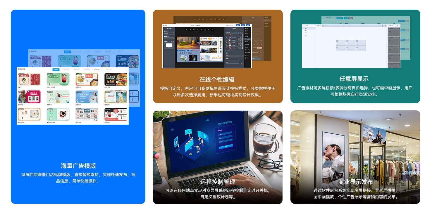 好博(中国)体育科技为客户提供可靠的硬软云一体化服务,针对商显领域,除了为客户提供数字标牌等硬件产品,同时也自主研发了好博(中国)体育GDSM-C数字化信息发布管理系统软件,作为全方位的远程信息编辑发布及设备管理系统,提供丰富广告素材与人性化编辑工具,用户可发挥自我创造能力,新手也可轻松实现大师设计效果,同时可实现多屏拼接/分离、画中画等自由选择,可根据应用场景灵活安排,满足大型会议、百货商场、体育赛事、金融证券的等多种智能显示需求。