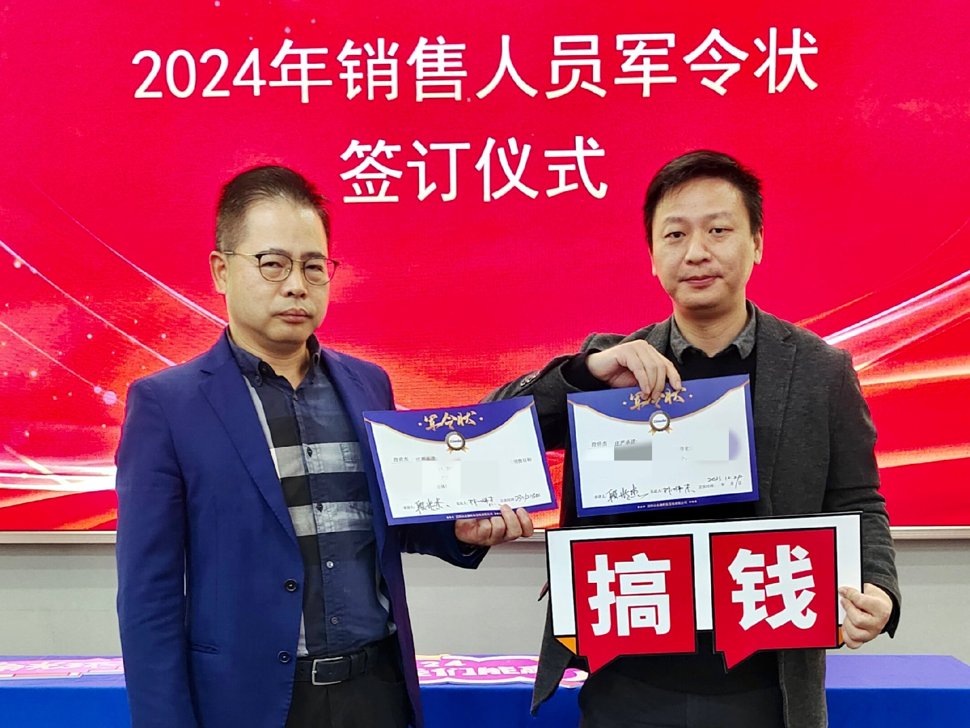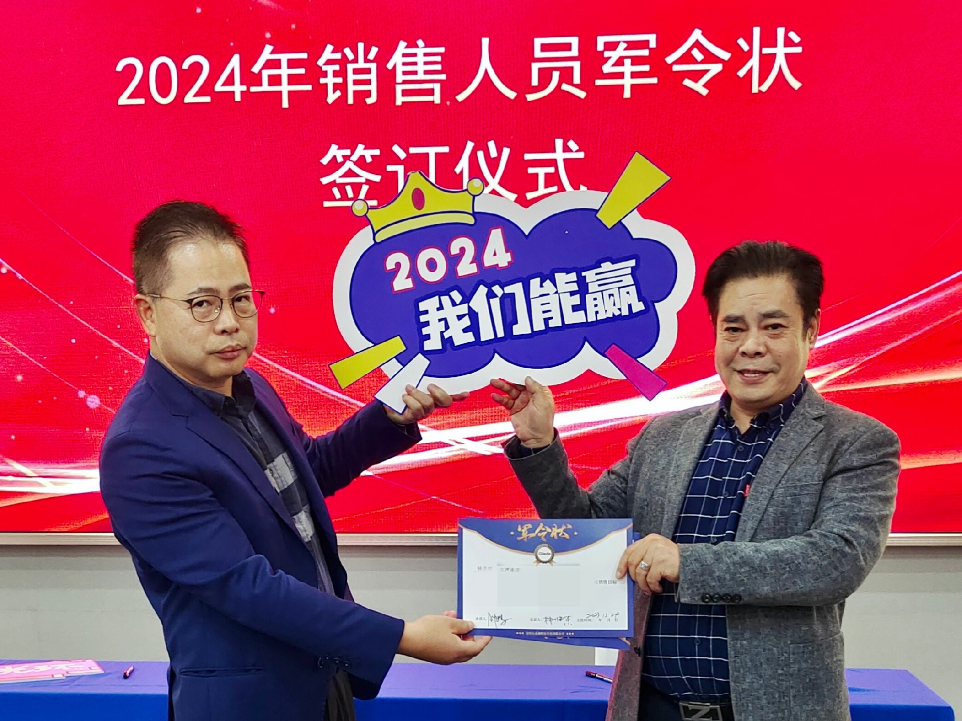 2024公司年度战略目标确立,言出必行,使命必达,国际/国内销售团队为了共同的目标开始军令状签约仪式。一纸军令状,是好博(中国)体育科技与销售人员的双向承诺,是压力,更是动力。是不破楼兰终不还的决心,更是春风得意马蹄疾,一日看尽长安花的期待。