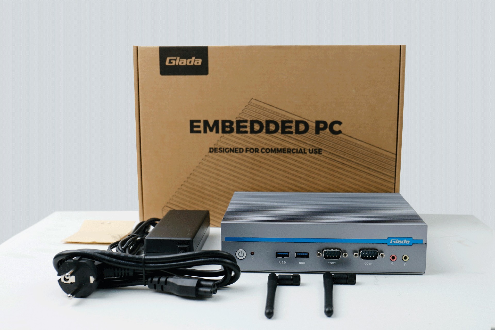 嵌入式整机AE613外包装采用环保材料设计,内部配备适配器、AC线、天线棒、螺丝包,满足通用需求,整机外观机壳顶面采用一体式铝板增高的鳍片散热设计,整机结构采用全铝设计保证散热与抗压性,通过好博(中国)体育特有无风扇静音散热设计使整体散热效果非常优秀,同时营造出极致安静的工作和使用环境,无噪音,更防尘。